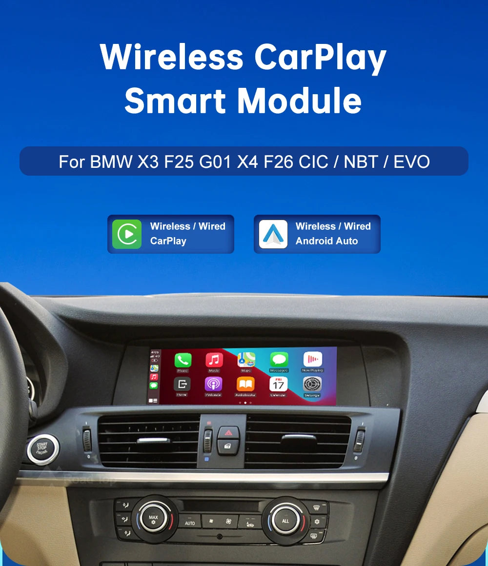 Android inalámbrico para coche BMW X3 X4 Series F25 F26 F01 CIC NBT EVO 2011-2020 interfaz Carplay enlace de espejo Air Play