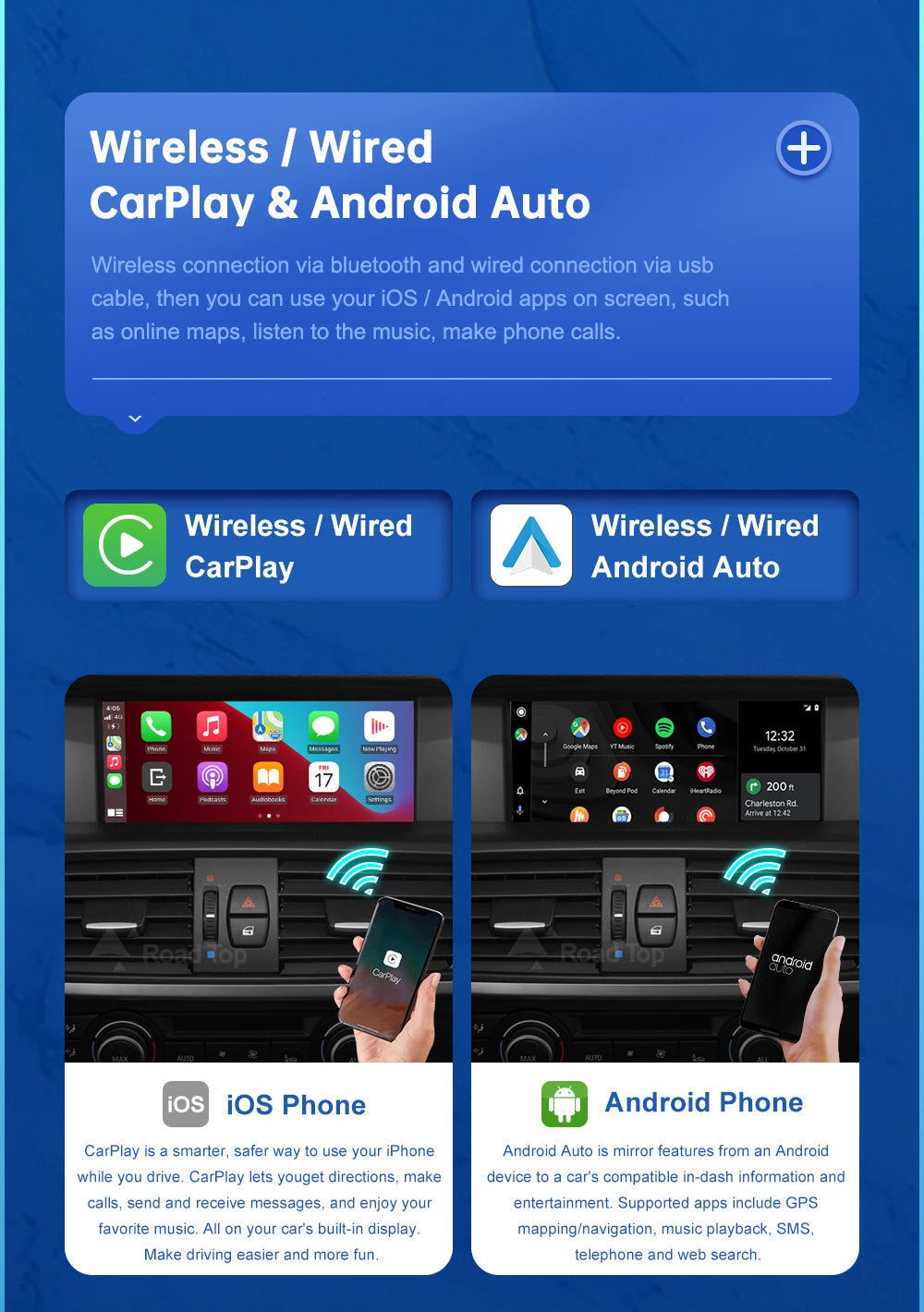 Special Features: función wifi,soporte de control del volante,Soporte 3G red,Soporte 4G Red,Soporte de Can-Bus,GPS incorporado,Teléfono móvil,Reproductores de MP3,Control de voz,Carplay,Android automático,Entrada de marcha atrás