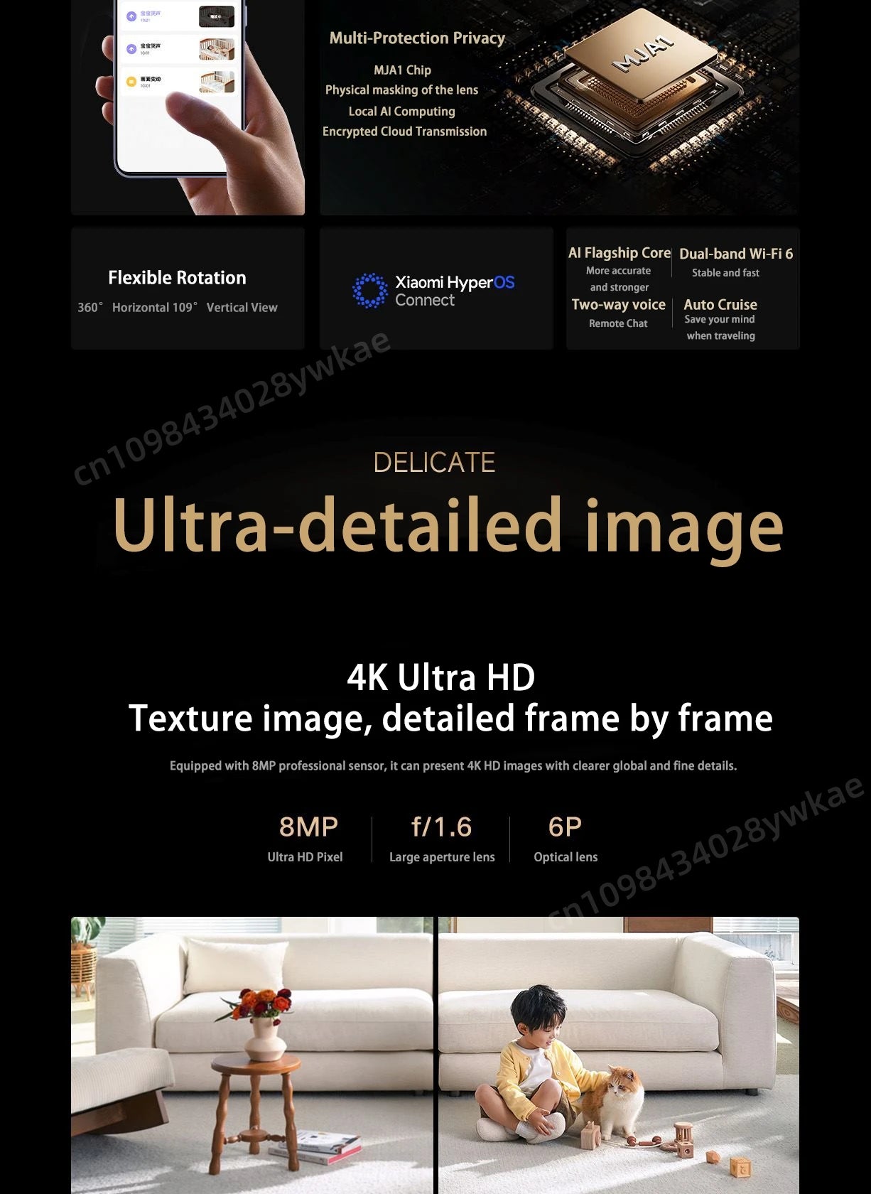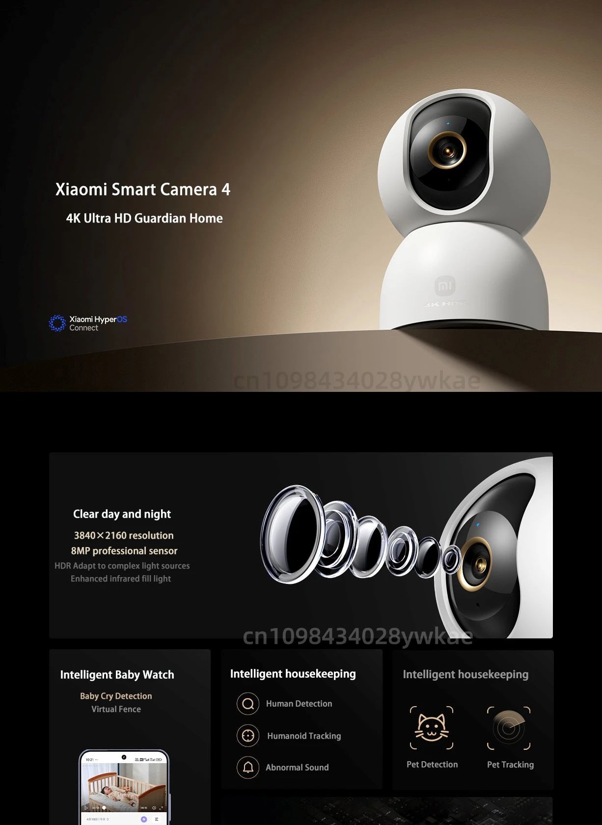 Cámara inteligente Xiaomi 4 8MP 4K UHD monitoreo interior remoto 360 grados sin ángulo muerto visión nocturna red cámara para el hogar