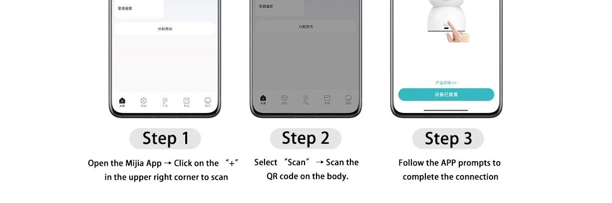 Conexión a la aplicación Mi Home: este producto ya está integrado en Mi Home, lo que permite el control a través de la aplicación Mi Home y una integración perfecta con otros productos.Escanee el código QR para descargar e instalar la aplicación Mi Home.Los usuarios que ya hayan instalado la aplicación Mi Home accederán directamente a la página de conexión del dispositivo.Alternativamente, puede buscar "Mi Home" en la tienda de aplicaciones, descargar e instalar la aplicación Mi Home.Abra la página de inicio de la aplicación Mi Home, haga clic en "+" en la esquina superior derecha y siga las indicaciones de la aplicación para agregar el dispositivo.