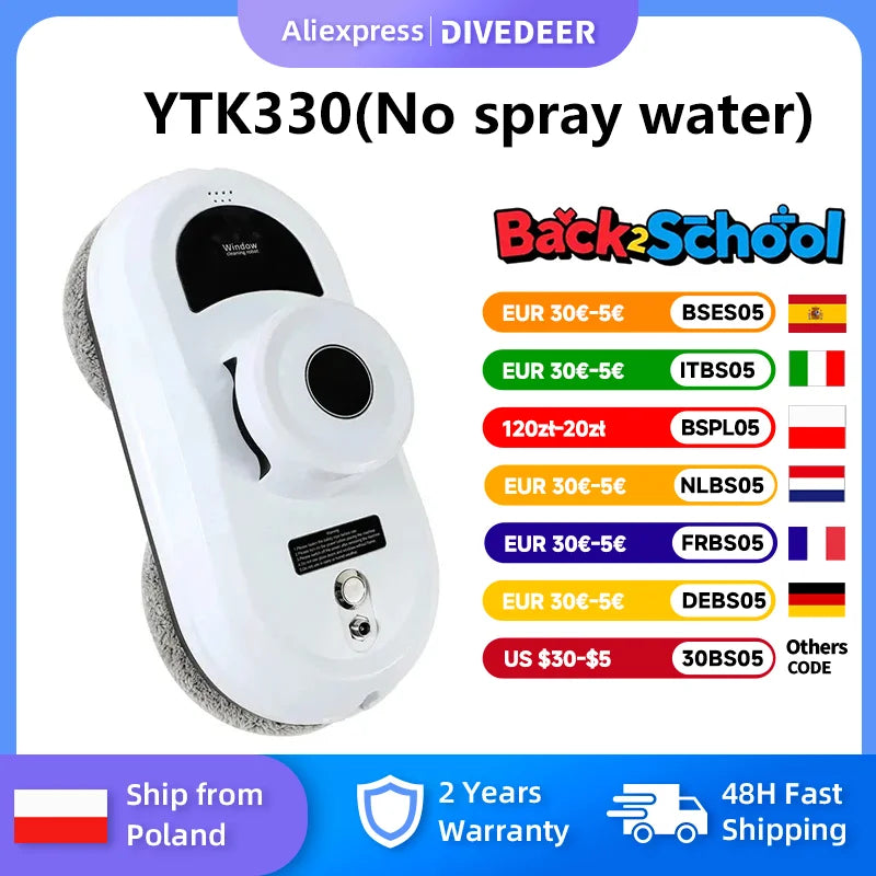 DIVEDEER-Robot de limpieza de ventanas sin pulverización de agua, máquina de limpieza con Control remoto inalámbrico de vidrio de succión inteligente anticaída