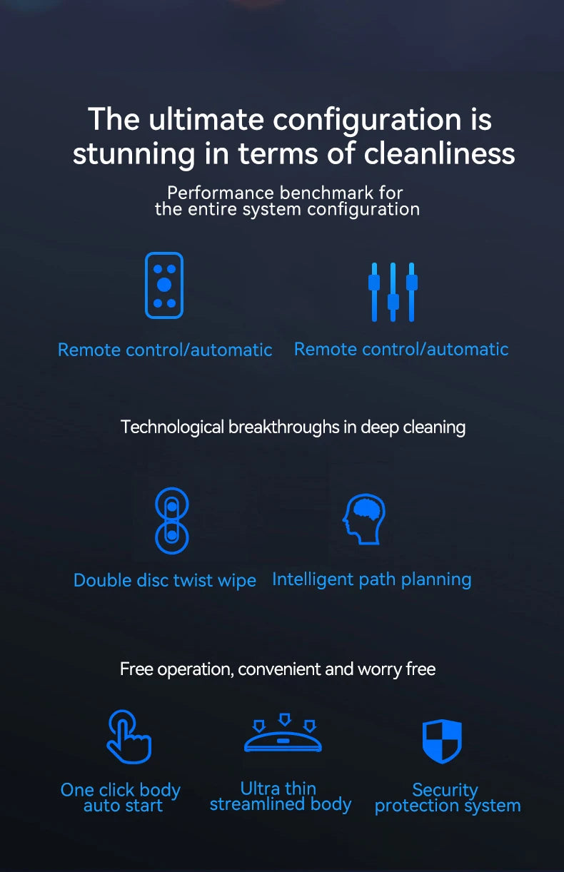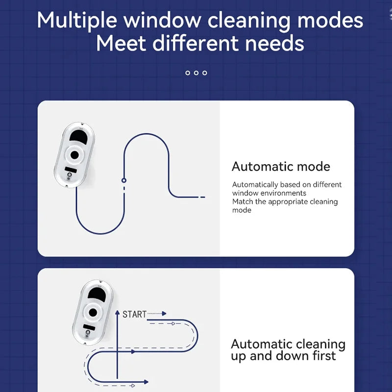 1.Espere 20 segundos después de iniciar hasta que la luz azul deje de parpadear y luego comience a funcionar.Porque el robot necesita 20 segundos para detectar el plano de cristal.