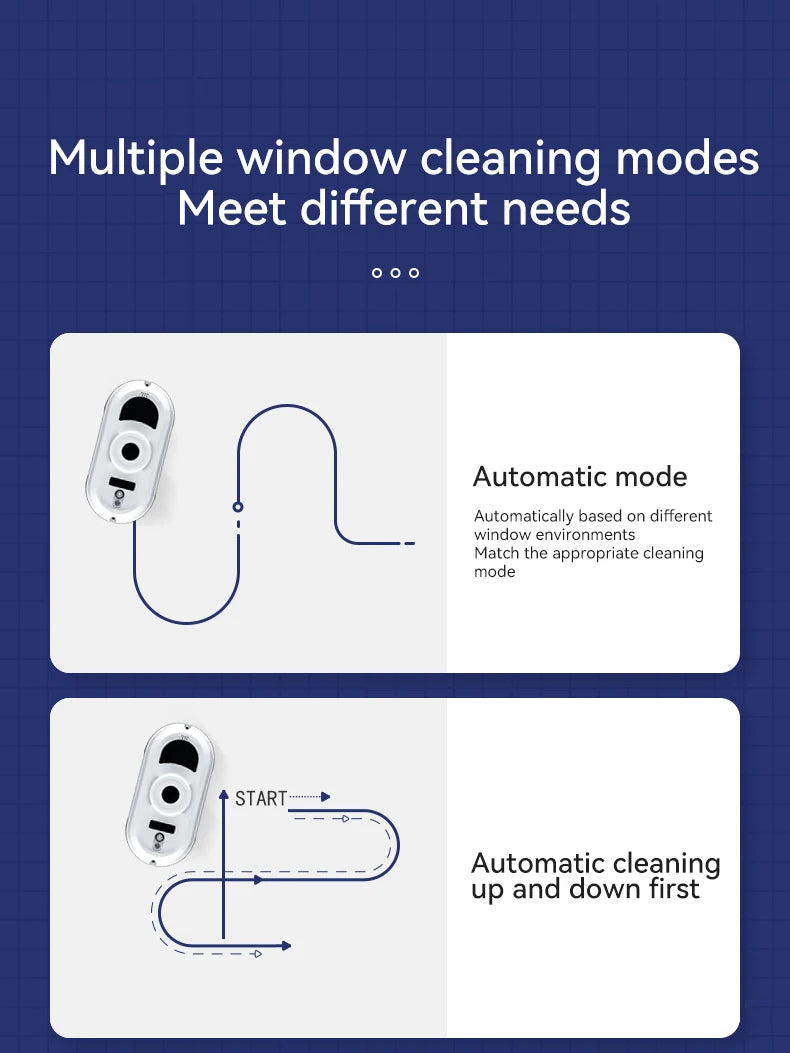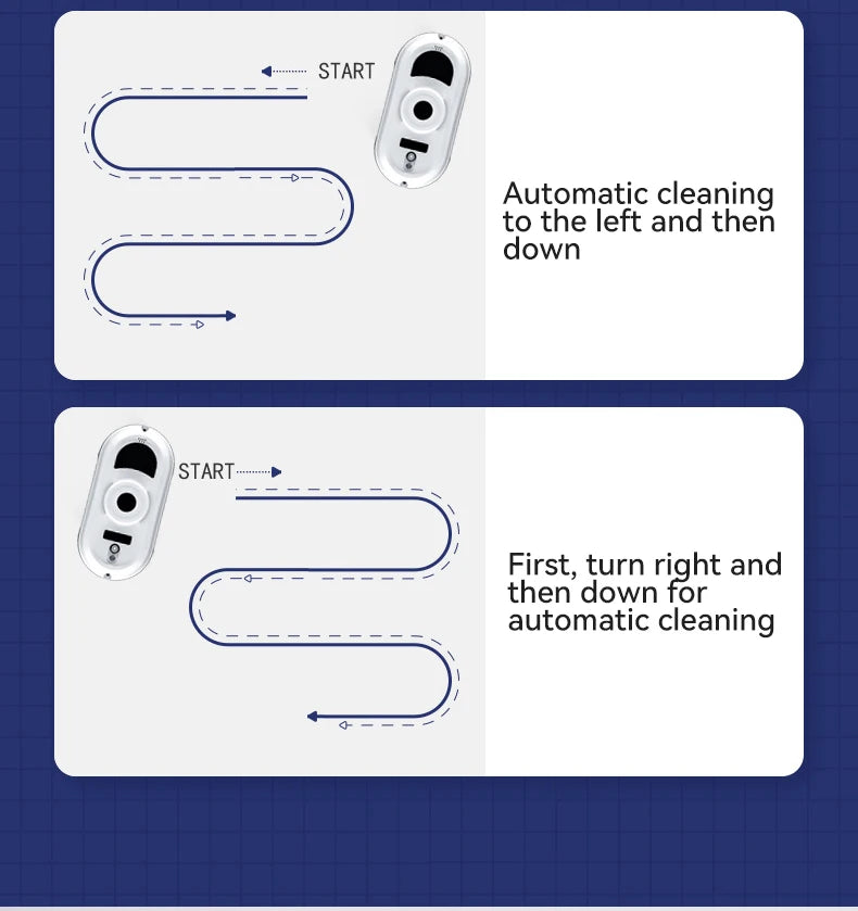 1.Espere 20 segundos después de iniciar hasta que la luz azul deje de parpadear y luego comience a funcionar.Porque el robot necesita 20 segundos para detectar el plano de cristal.