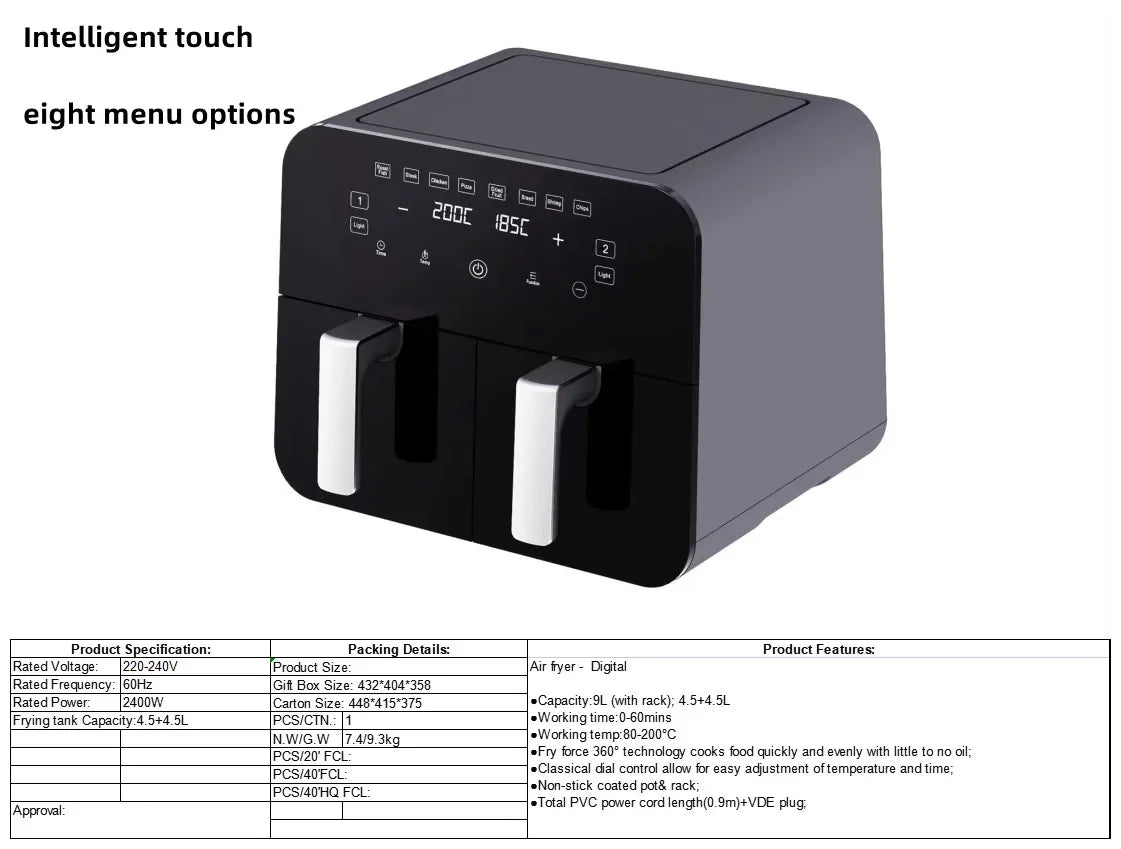 Electrodomésticos De Cocina inteligentes Freidoras De Aire Ninja personalizadas con doble cesta Airfryers 6L 8L Freidora De Aire freidora De Aire doble con cesta doble