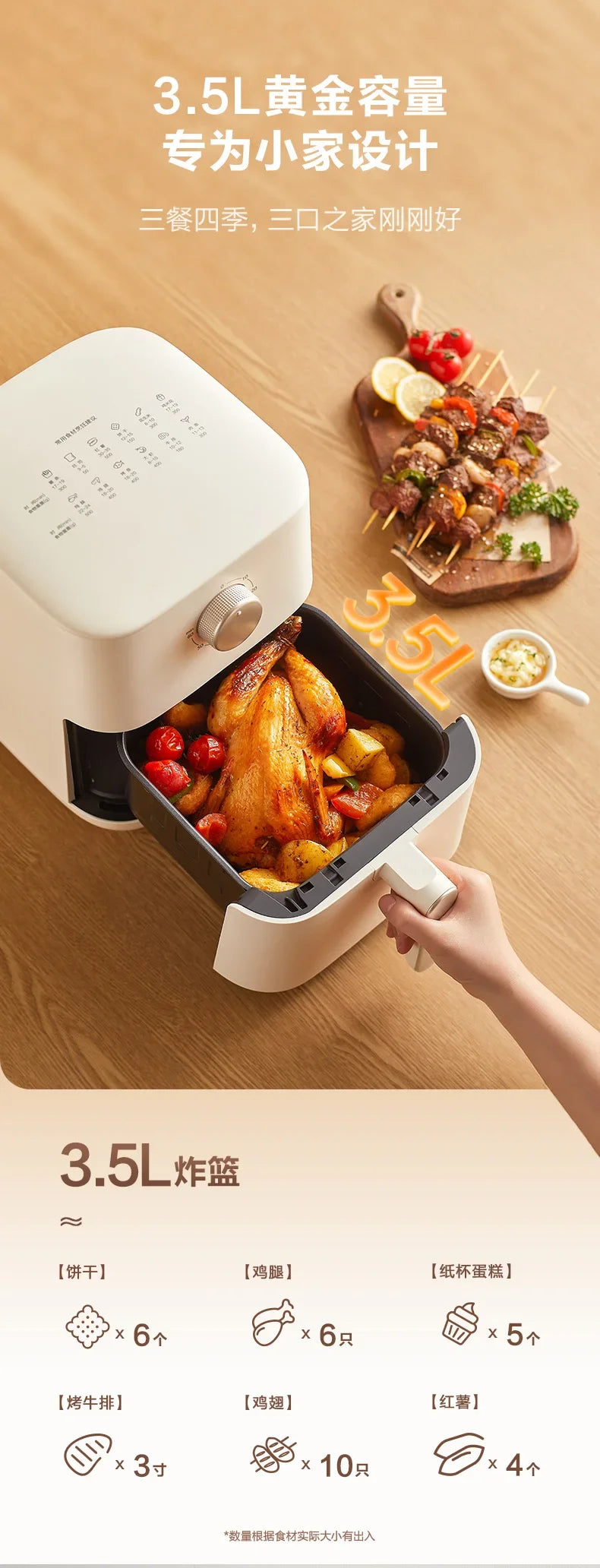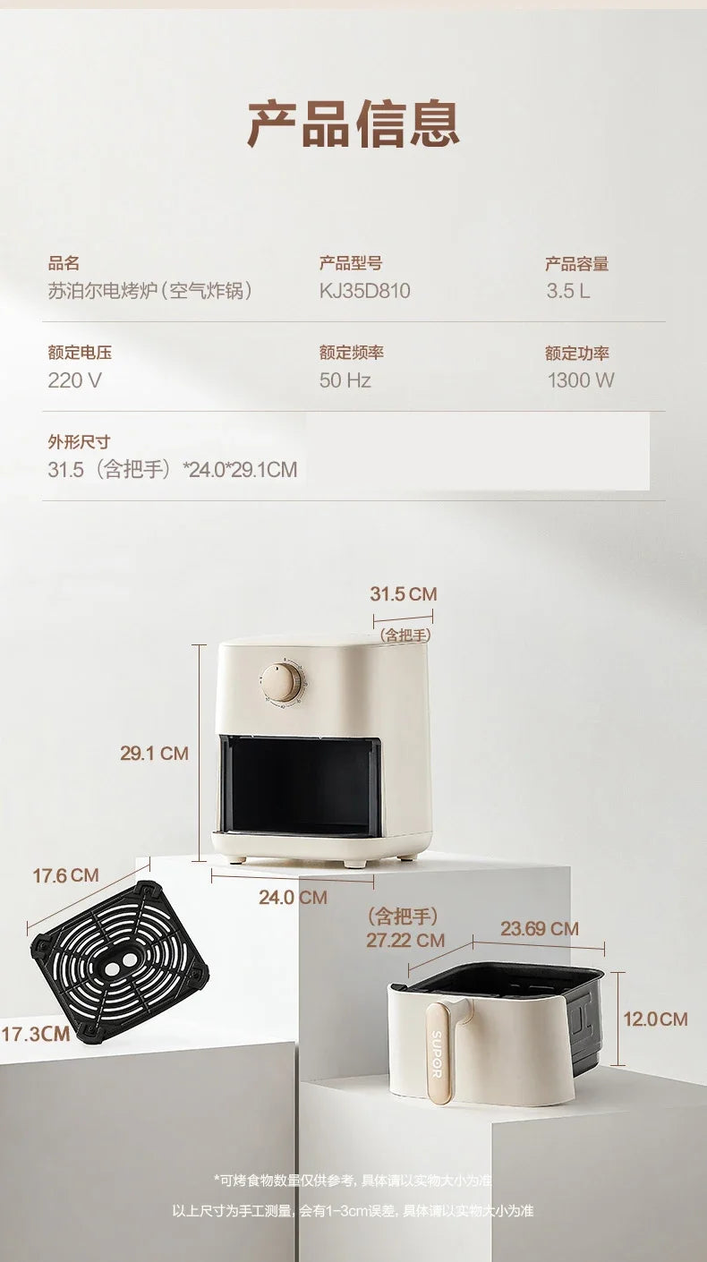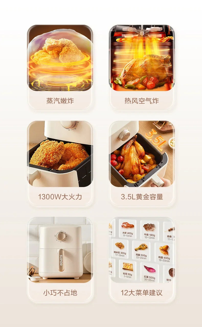 Freidora de aire multifuncional de 220 V y 3,5 L para uso doméstico con cocción inteligente de vapor y sin aceite