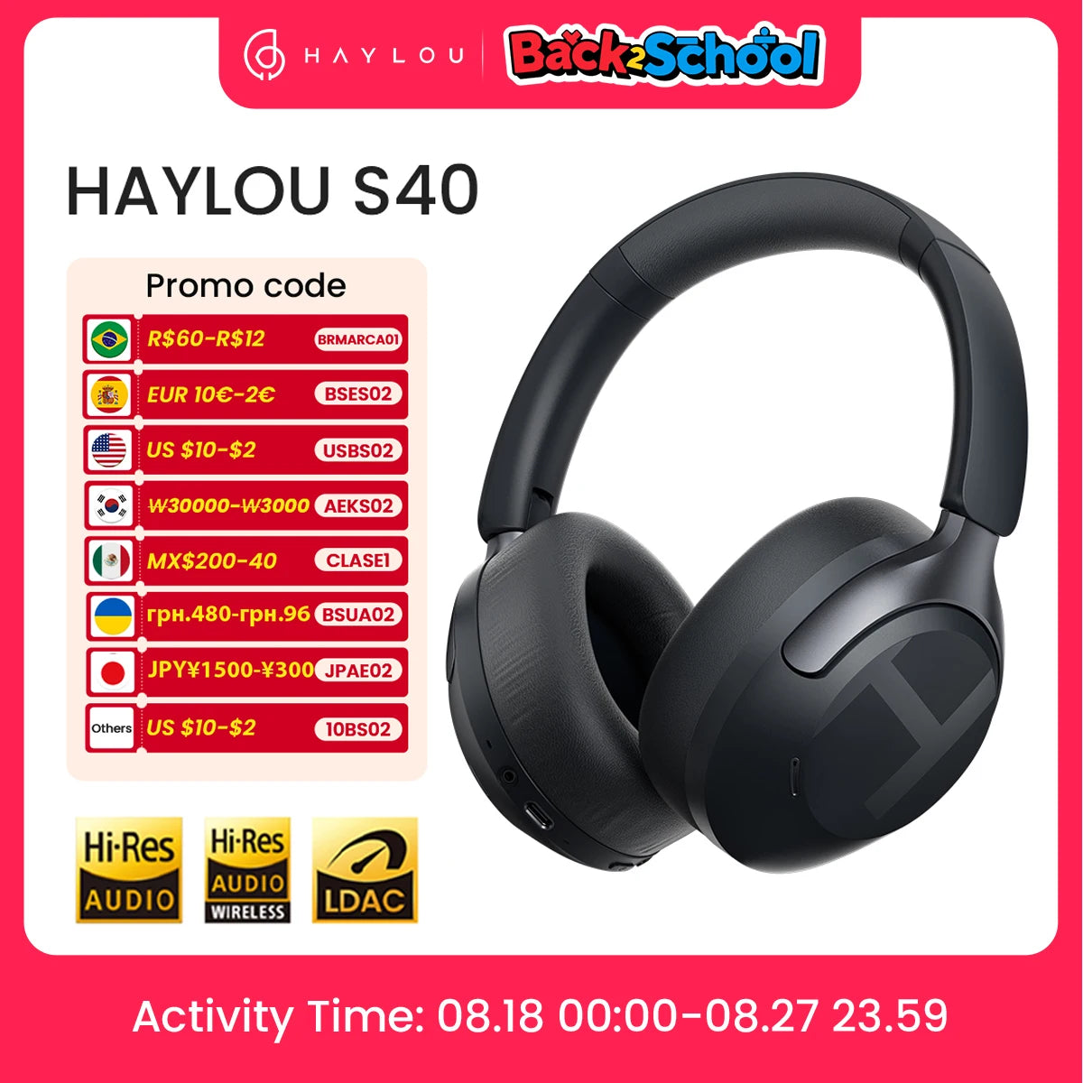 HAYLOU S40 ANC auriculares inalámbricos 50dB cancelación de ruido auriculares de Audio espacial 3D de alta resolución con LDAC Bluetooth 6,0 auriculares sobre la oreja