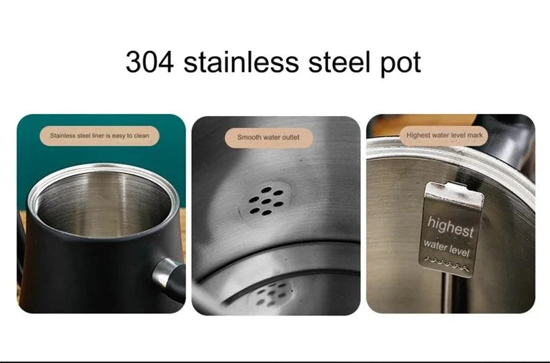 【Acero inoxidable 304】Nuestros hervidores eléctricos hechos de acero inoxidable 304 de calidad alimentaria, ninguna sustancia nociva se disolverá incluso en altas temperaturas.Los mangos antideslizantes y anti-quemaduras para proteger sus manos, con capacidad de 1000 ml, para satisfacer las necesidades diarias de consumo de café.