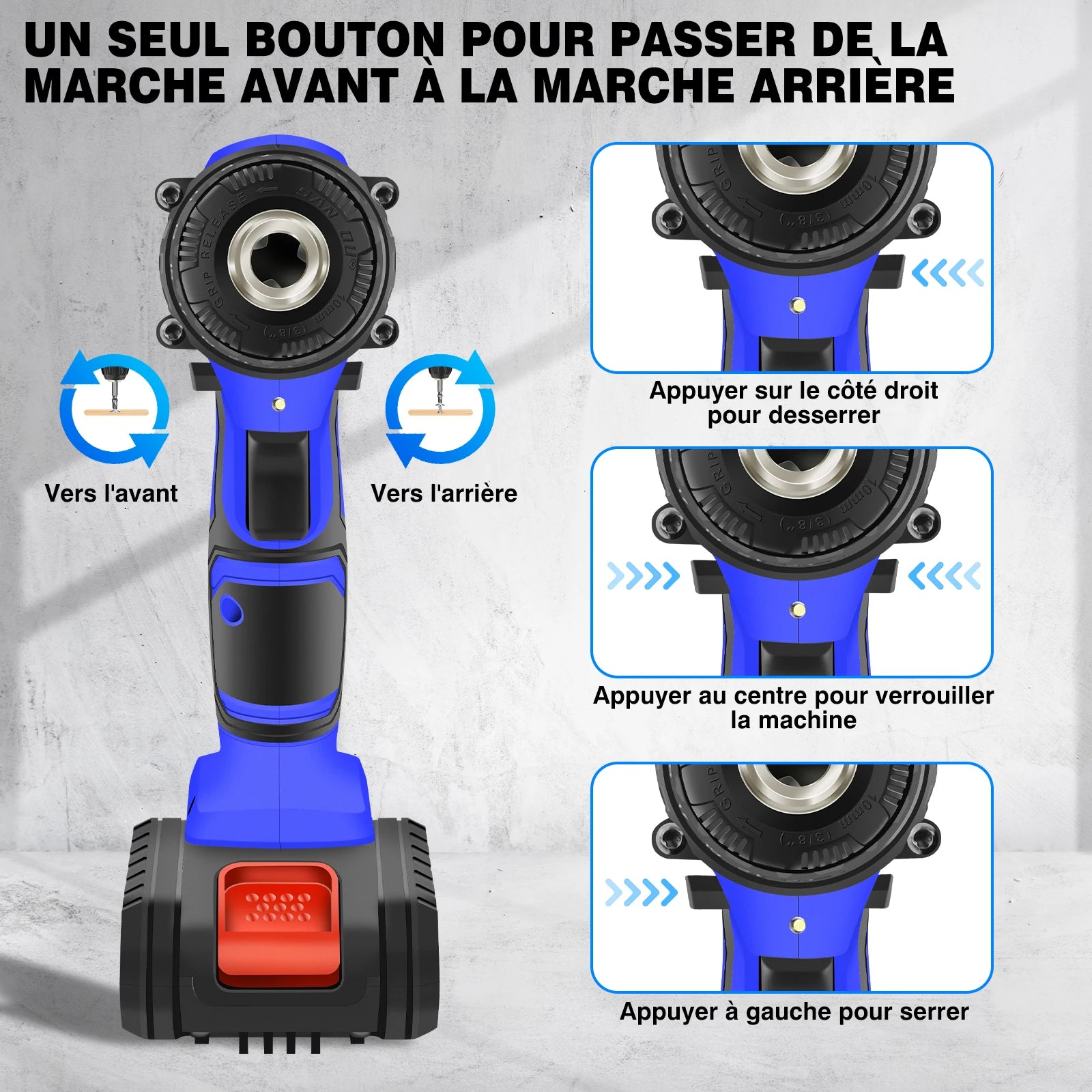 【Herramienta eléctrica multifunción】 El juego de taladros inalámbricos de 21 V se suministra con una potente batería de iones de litio, proporciona energía de trabajo súper continua y cada batería ha sido probada miles de veces, por lo que no tiene que preocuparse por la duración de la batería.Es una herramienta eléctrica muy adecuada para profesionales y entusiastas del bricolaje.