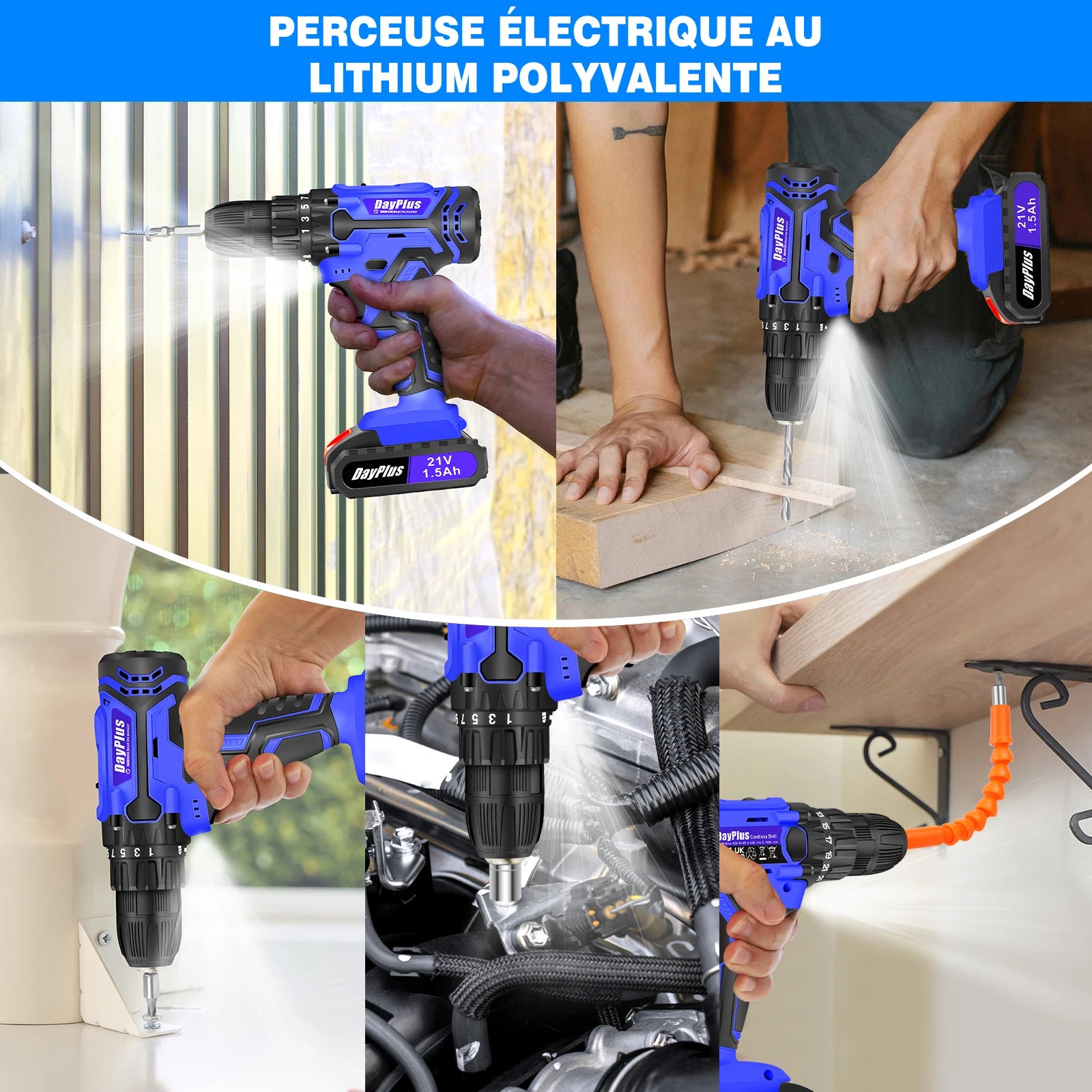 • 【Herramienta eléctrica multifunción】 El juego de taladros inalámbricos de 21 V se suministra con una potente batería de iones de litio, proporciona energía de trabajo súper continua y cada batería ha sido probada miles de veces, por lo que no tiene que preocuparse por la duración de la batería.Es una herramienta eléctrica muy adecuada para profesionales y entusiastas del bricolaje.