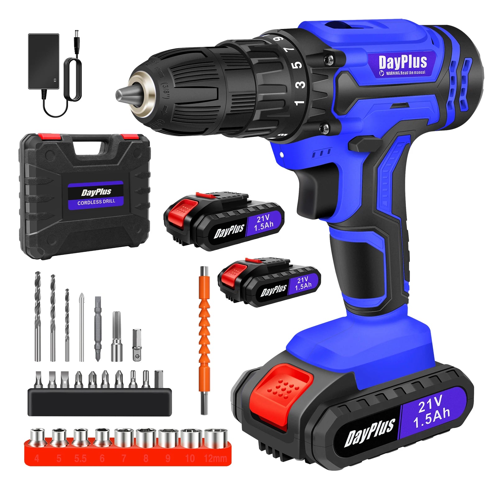• 【Velocidad de 2 engranajes y torque de 45 Nm】 -El juego de taladros inalámbricos con engranaje de torsión de 25+1 le ayuda a crear agujeros perfectos y precisos en metal, madera, baldosas de cerámica, etc.Velocidad ajustable (0-400 RPM/0-1400 RPM proporciona un control preciso para diferentes tareas de atornillado/perforación, previene eficazmente daños en las cabezas de los tornillos, roscas y piezas de trabajo.