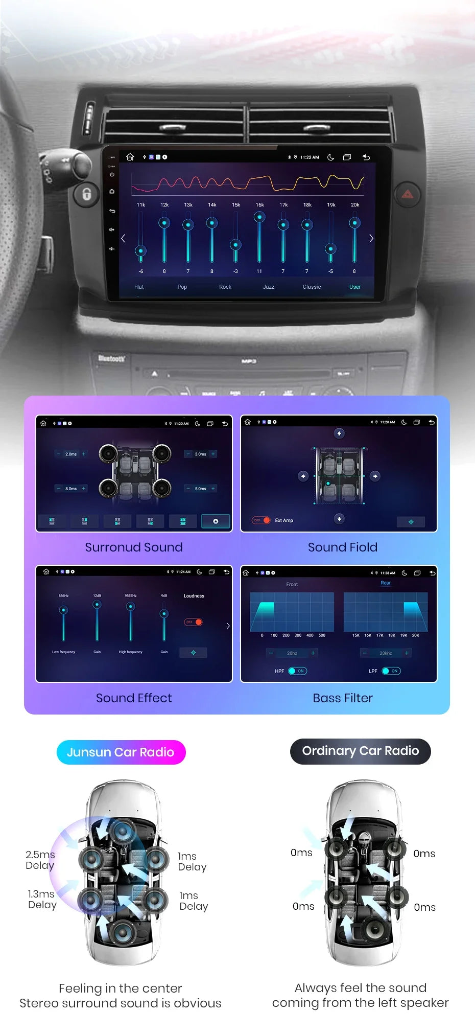 4.Introducción a la marca Junsun: las 10 mejores marcas de AliExpress, Junsun tiene más de 2000 000 fanáticos. Durante la última década, hemos atendido a más de 5 millones de usuarios en todo el mundo, populares entre los clientes.Nuestro objetivo es seguir trabajando duro para crear hardware y software innovadores de la radio del reproductor multimedia del automóvil para brindarle esa experiencia personalizada.Proporcionamos actualizaciones de firmware, software, interfaz de usuario y mapas de navegación GRATIS.