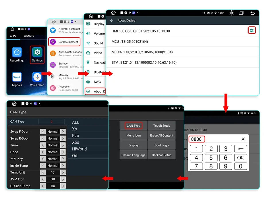 3) Hay Canbus en el producto, si compra V1/V1.C/V1 Pro/V1 Pro.C, consulte la imagen para configurar;