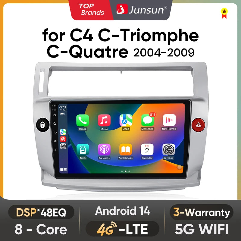 Junsun Android inalámbrico CarPlay Auto Radio de coche para Citroen C4 c-triomphe c-quatre 2004-2009 sistemas inteligentes DSP SWC RDS GPS