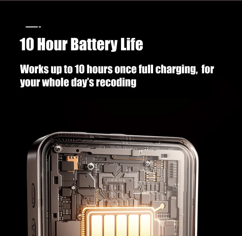 - Batería de larga duración: ofrece hasta 10 horas de duración de la batería con una carga completa, suficiente para tareas de grabación durante todo el día, por lo que no tiene que preocuparse por quedarse sin energía durante sesiones importantes.