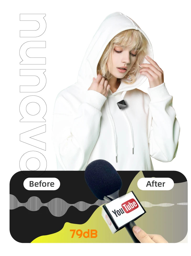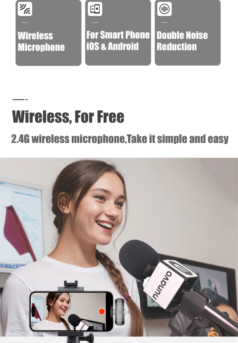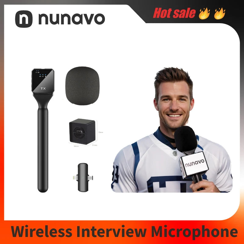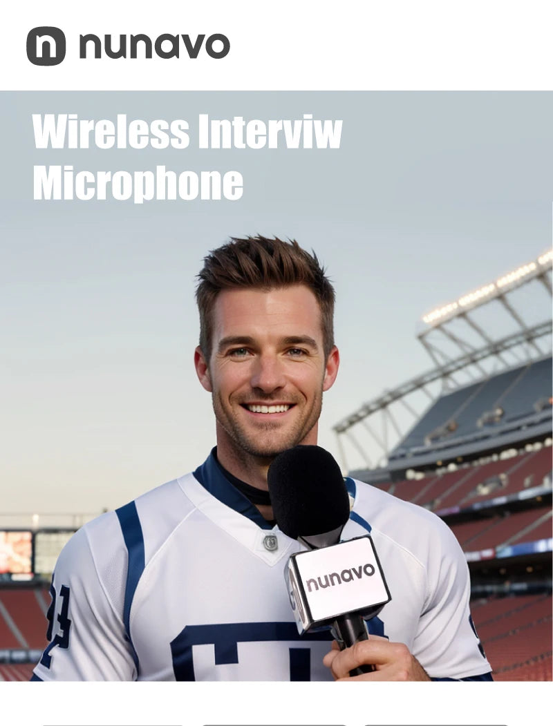 El micrófono inalámbrico para entrevista NUNAVO es una solución de audio versátil diseñada para una captura de audio perfecta en varios escenarios.Ideal para entrevistas, creación de contenido y grabación en movimiento, combina comodidad y funciones de alto rendimiento para mejorar la calidad de su audio.