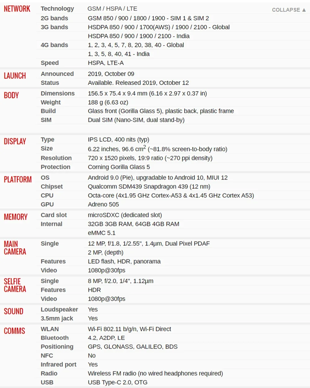 Original Xiaomi Redmi 8 4GB 64GB 4G Smartphone Dual SIM 6,22 ''12MP + 2MP + 8MP 4700 mAh Snapdragon 439 octa-core 4G LTE teléfono móvil