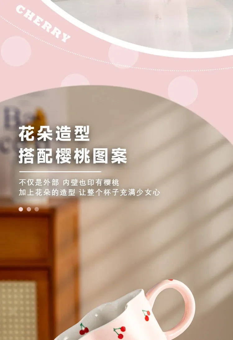 Taza de cereza pintada a mano para niña, vaso de agua Irregular creativo, rosa encantador, tazas de leche de cerámica hechas a mano, tazas de café de porcelana, regalo 2023