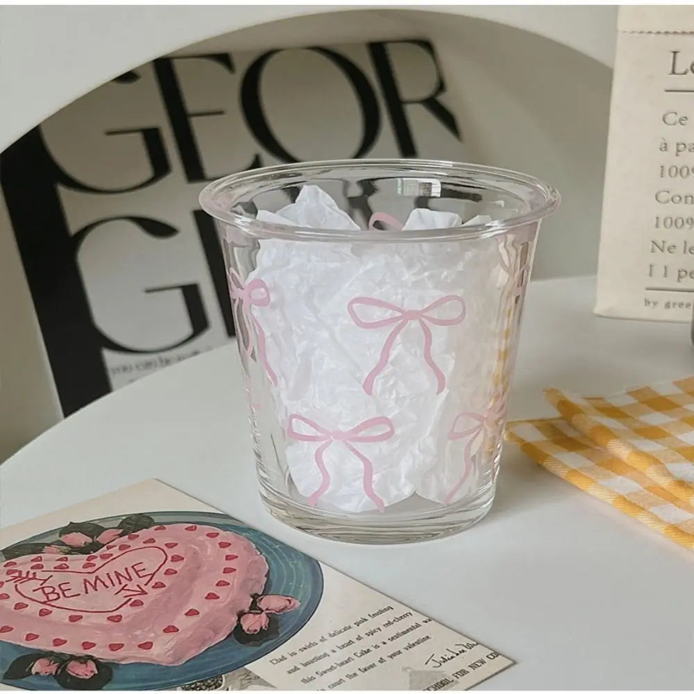 Taza de vidrio con lazo rosa para el verano, vaso de café helado, tazón de vidrio, regalo