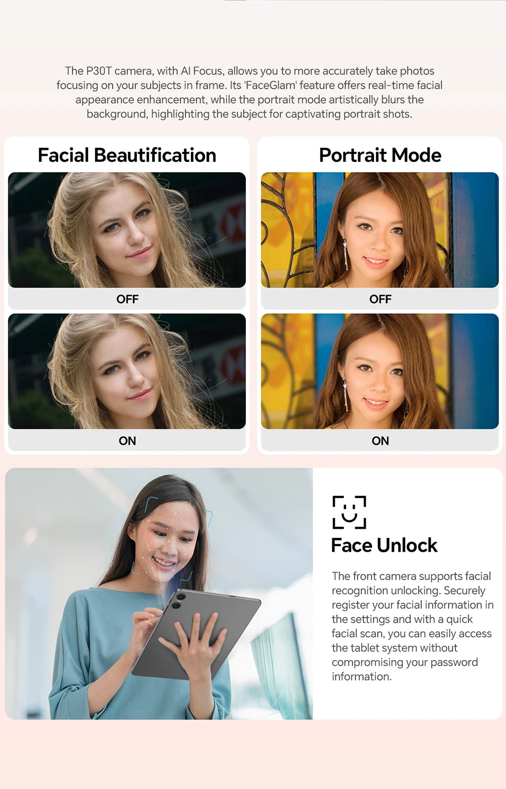 Teclast P30T Tableta, 10,1 pulgadas 1280x800, Android 14, Wi-Fi 6, Unisoc T606 Octa Núcleo, (4GB+6GB)10GB de RAM, 128GB de ROM(Soporte TF 1TB), 5MP+2MP, 6000mAh, Type C, Mali G57