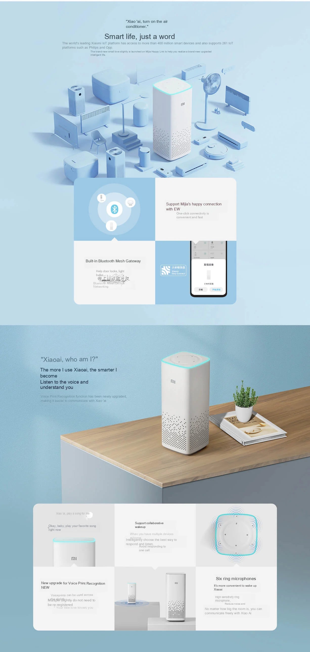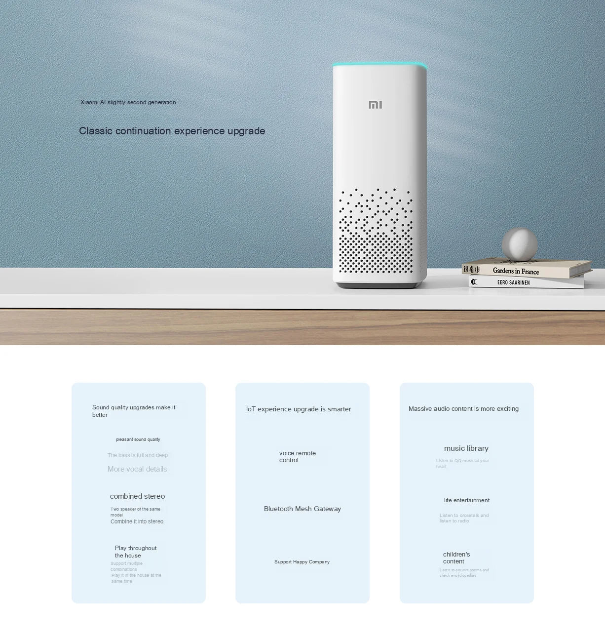 Xiaomi-altavoz AI Original, 2. ° Kit, altavoz inteligente inalámbrico, Control por voz AI, sincronización multidispositivo para hogar inteligente, Robot aspirador multicámara