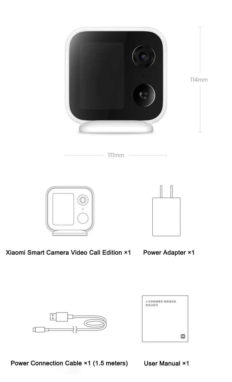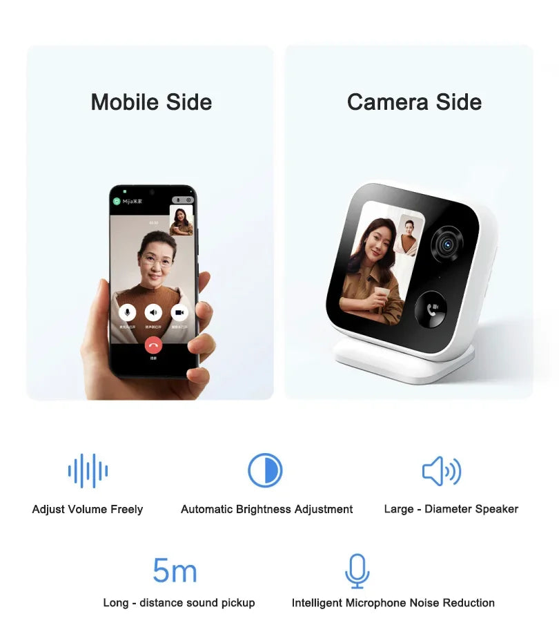 *Llamada con una sola tecla y llamada de dispositivo: la respuesta gratuita requiere actualizar el firmware a la última versión en la aplicación Mijia y configurarla en "Llamada WeChat > Más configuraciones" en la interfaz de control de la Xiaomi Smart Camera Video Call Edition.
