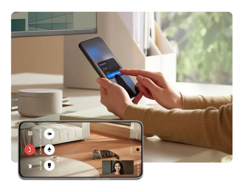 Durante una videollamada con otras personas, puede hacer un clic para activar la transmisión en tiempo real de la cámara en la pantalla, lo que permite a amigos y familiares ver la situación en casa o momentos lindos simultáneamente.