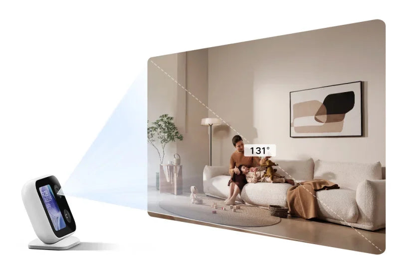 La cámara tiene un 131° Lente gran angular, capaz de capturar una vista más amplia del hogar.También admite ajuste de inclinación desde - 8° a 30°, satisfaciendo las necesidades de ángulo de visión para diferentes ubicaciones de altura.