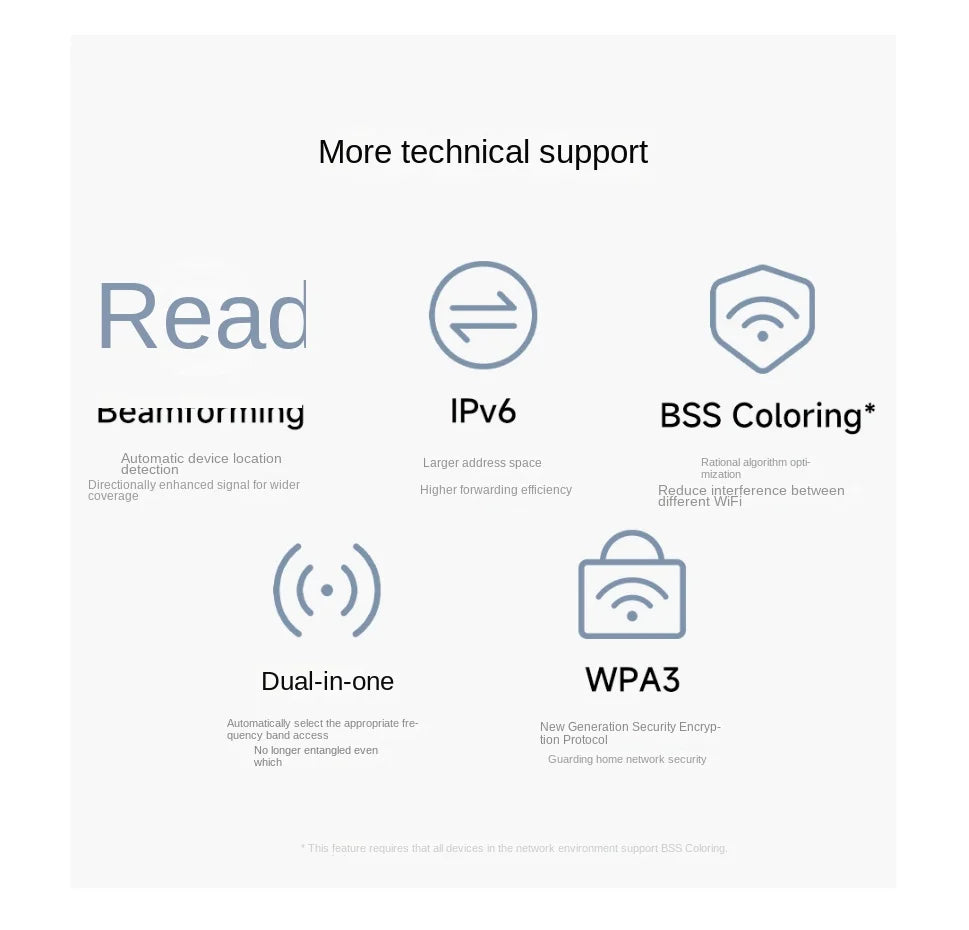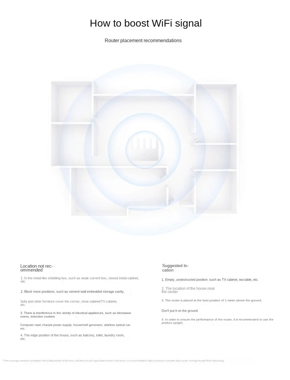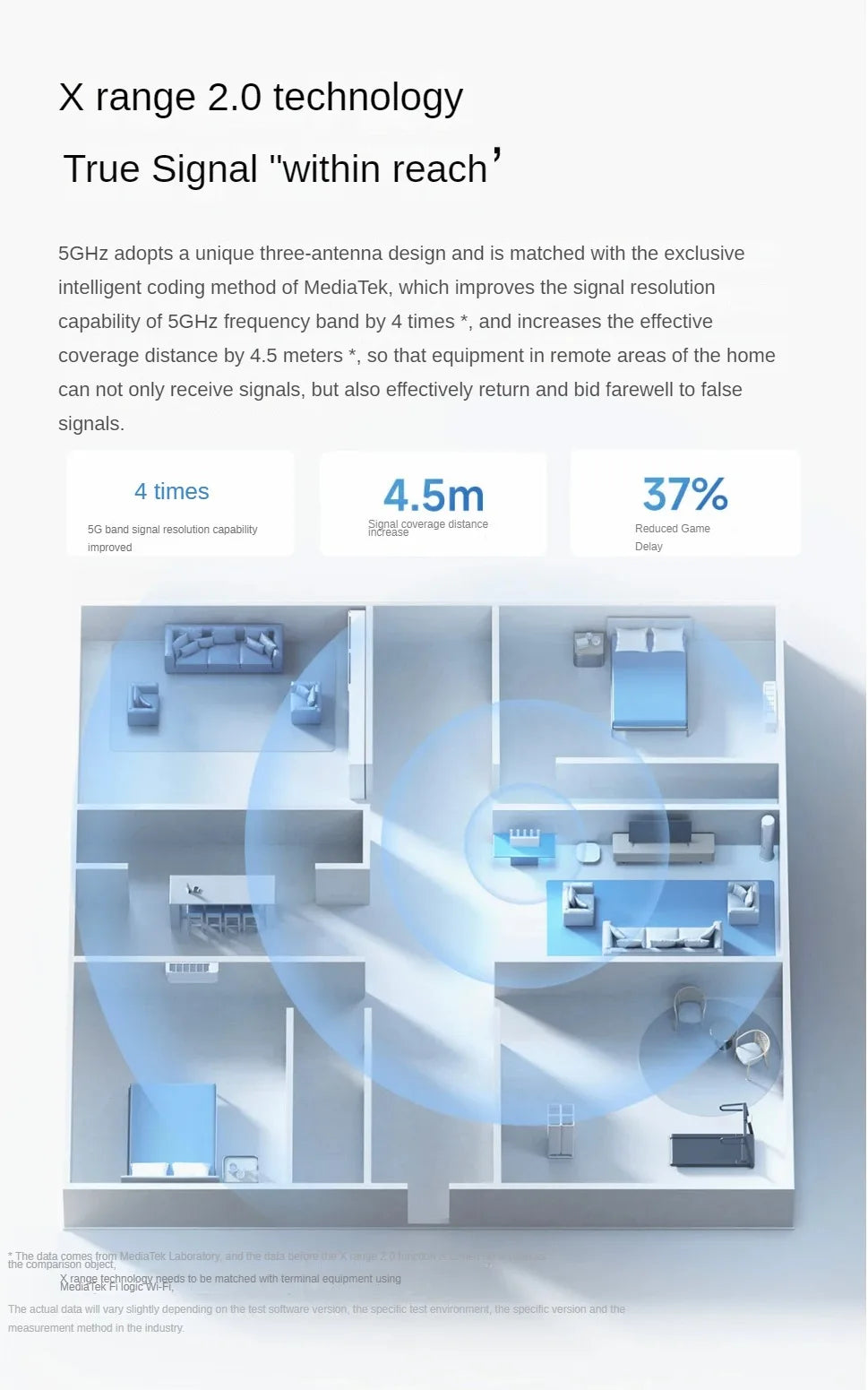 La integración de más amplificadores de señal ofrece una mayor capacidad de penetración de señal y un mayor rango de cobertura, sin temor a los obstáculos de la pared, y disfruta de una experiencia de Internet más gratuita.