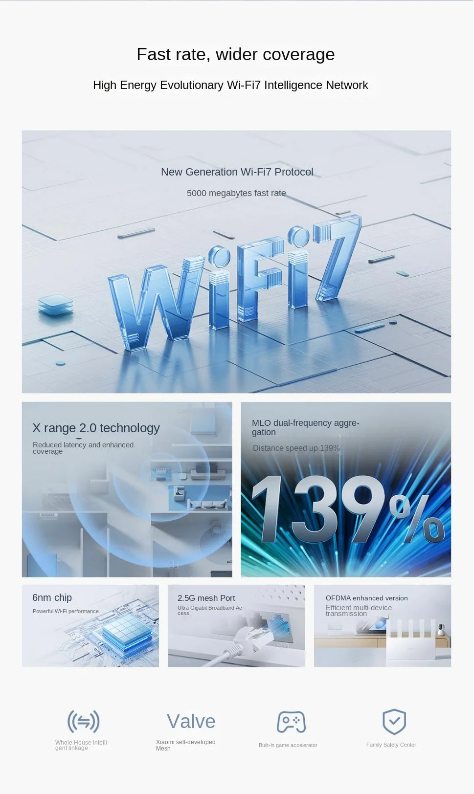 XIAOMI Router BE5000 WiFi 7 5011Mbps 2,4G/2,5GHz puerto de red 512MB de memoria acceso de banda ancha Dual protección de seguridad de red CN